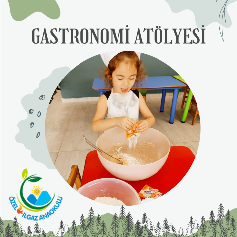 Özel Ilgaz anaokulu branş derslerimizden gastronomi atölyemiz çocuklarımızın gelişimsel süreçlerine katkı sağlayacak şekilde özel olarak hazırlanmıştır.